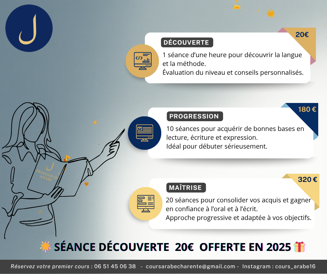 Découvrez nos cours d'arabe adaptés à tous les niveaux et besoins.